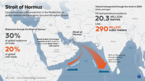 The waterway is one of the world’s most critical energy chokepoints, carrying around 20% of global petroleum consumption and a significant share of LNG trade. Disruption – or even the credible threat of disruption – could transmit rapidly into global energy markets and inflation expectations.